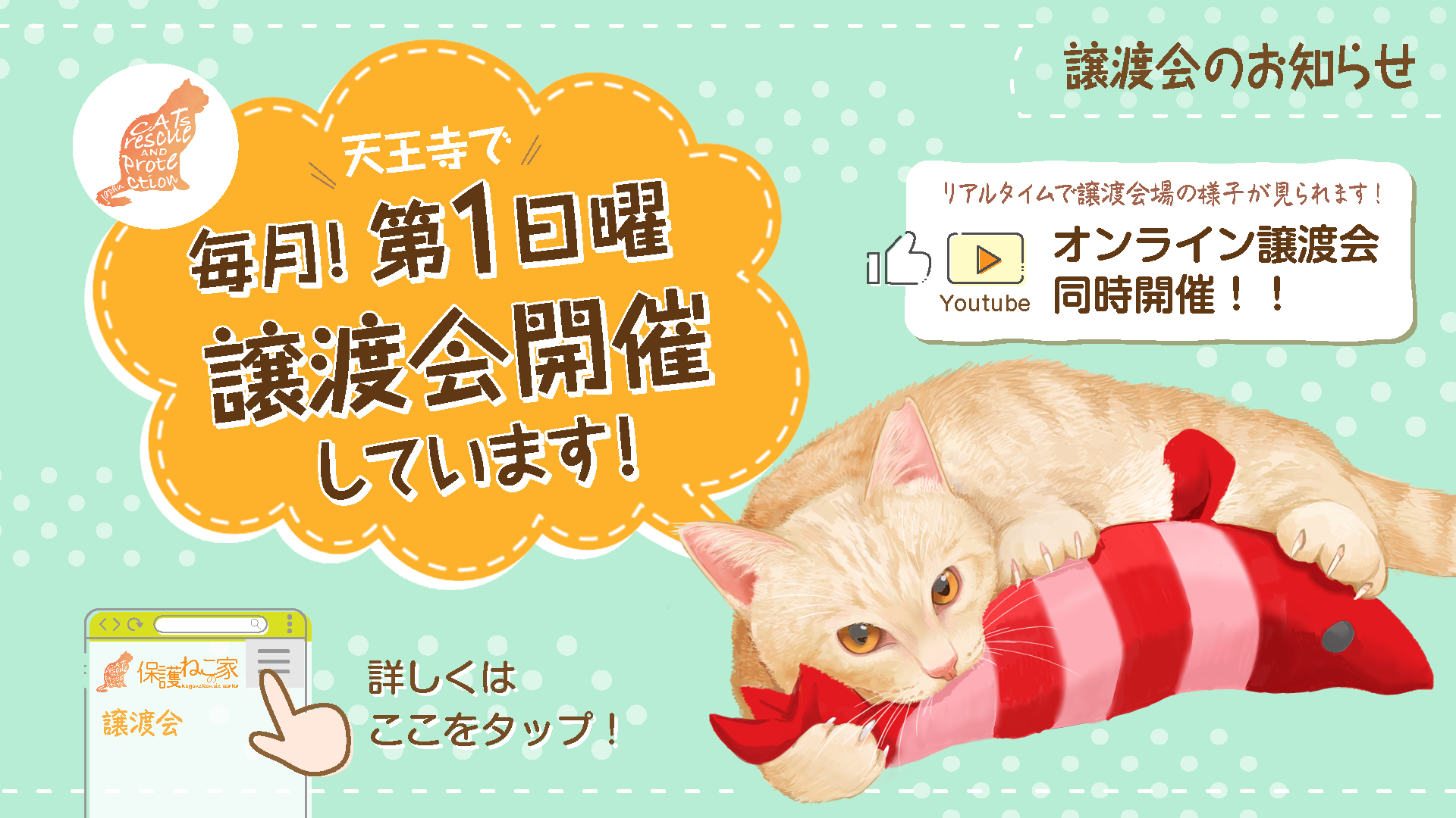 『2月度 保護ねこの家譲渡会in天王寺』開催のお知らせ