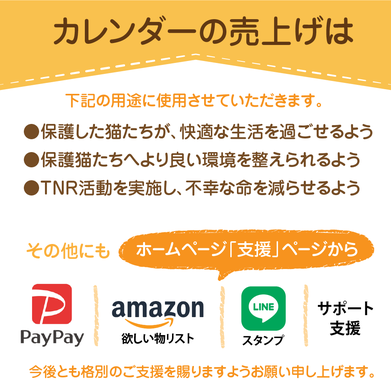 『保護ねこの家 チャリティーカレンダー』好評につき、今年も販売いたします。