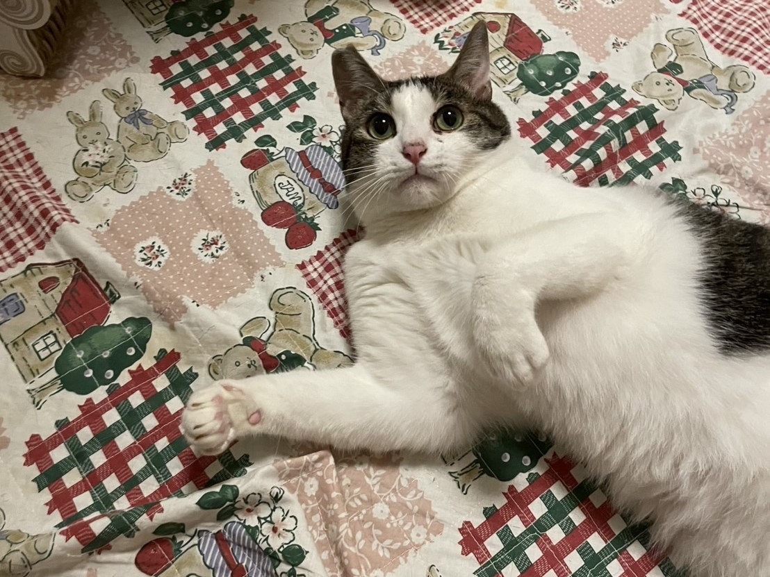 気に入らなければ猫パンチ、大好きなママとは一緒にベッドでスヤスヤ眠ります。