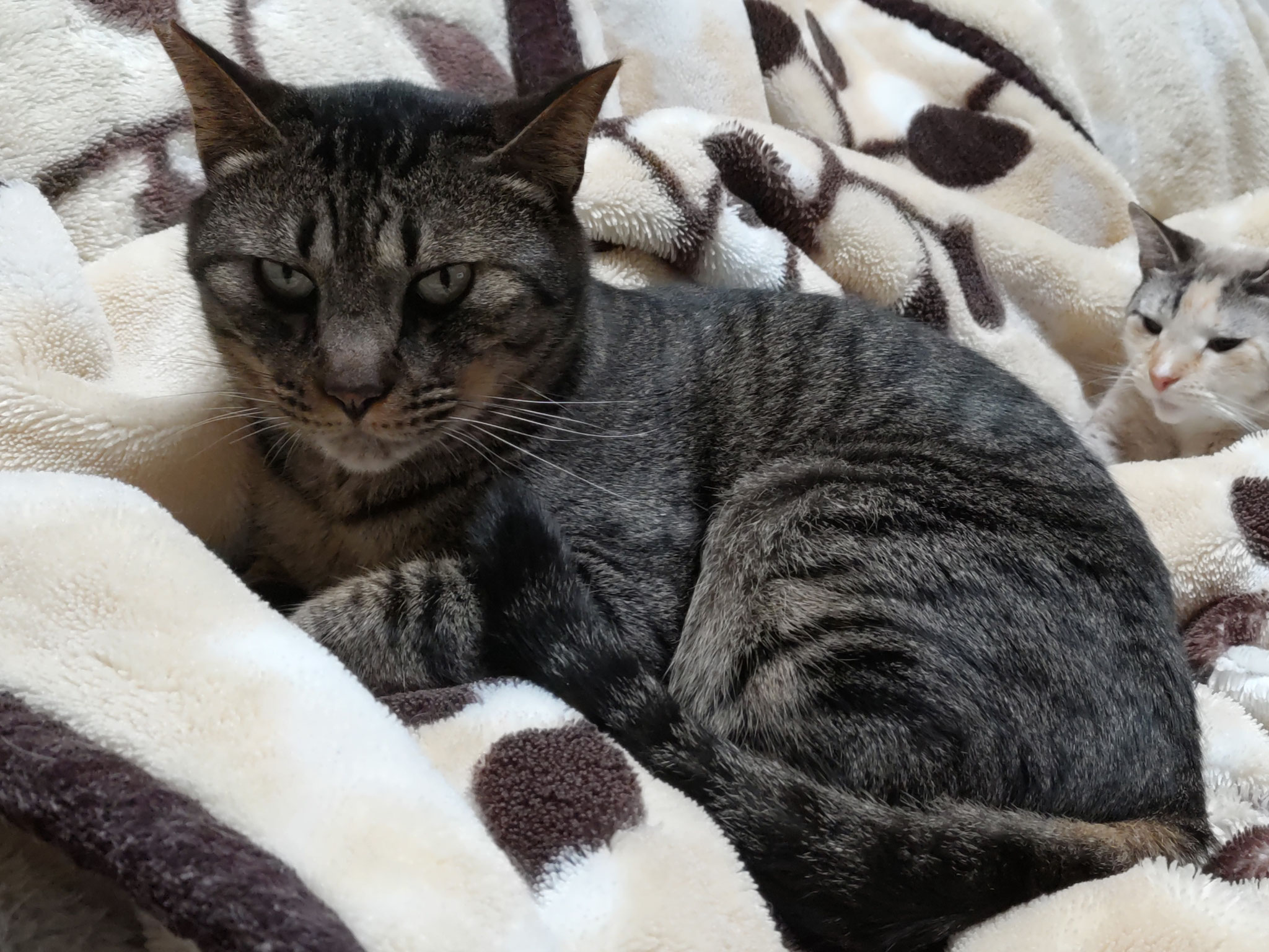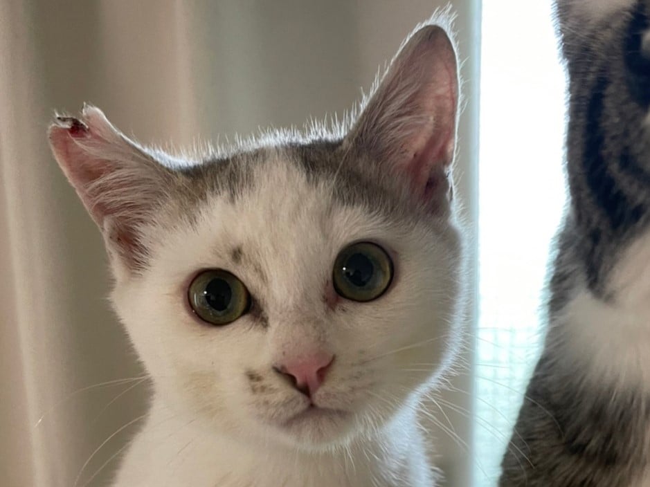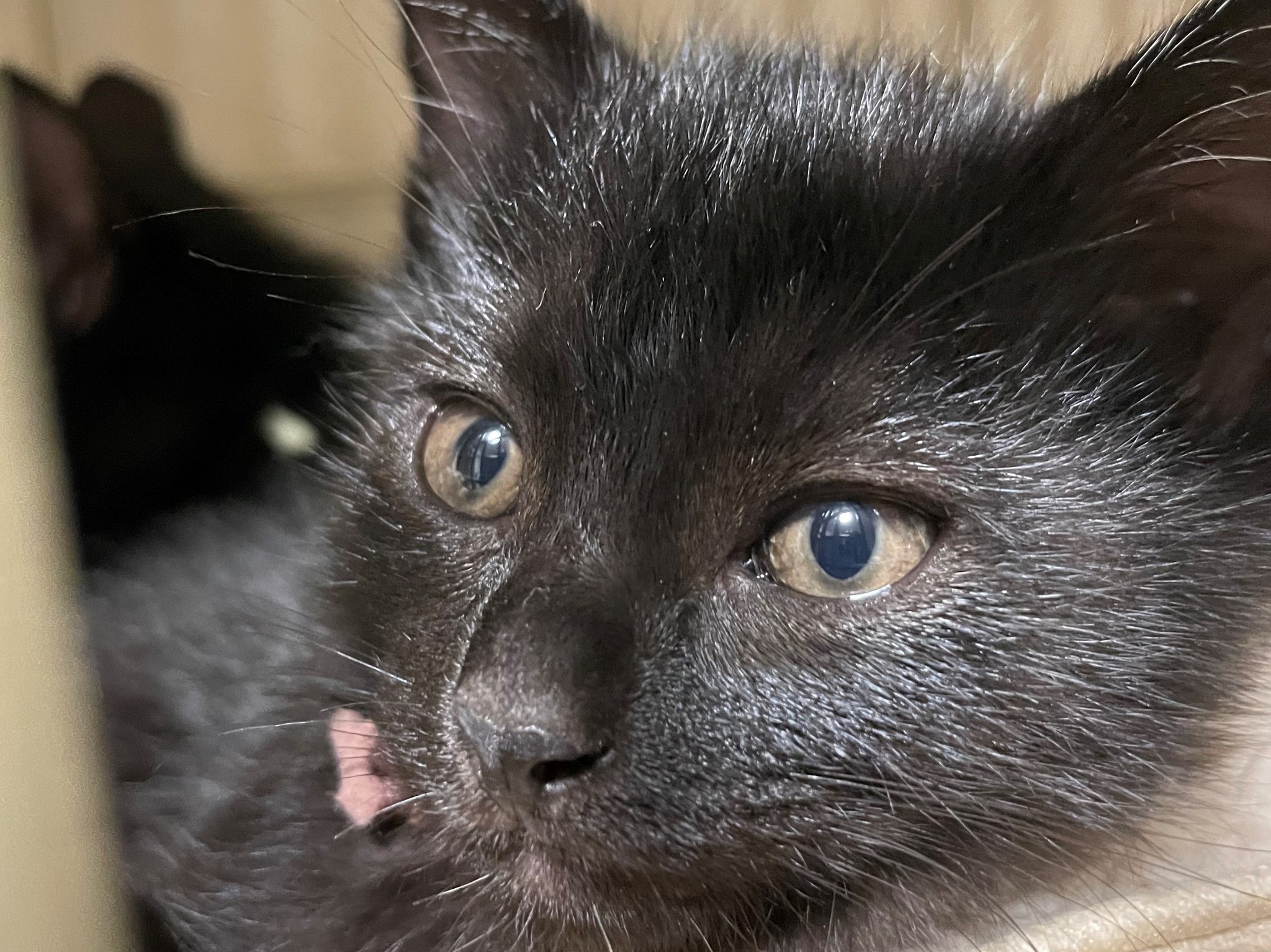 2023年3月に保護していたスタッフ(@kinchan_neko)の家族に迎えられ、先住猫ちゃんと仲良く暮らしています。