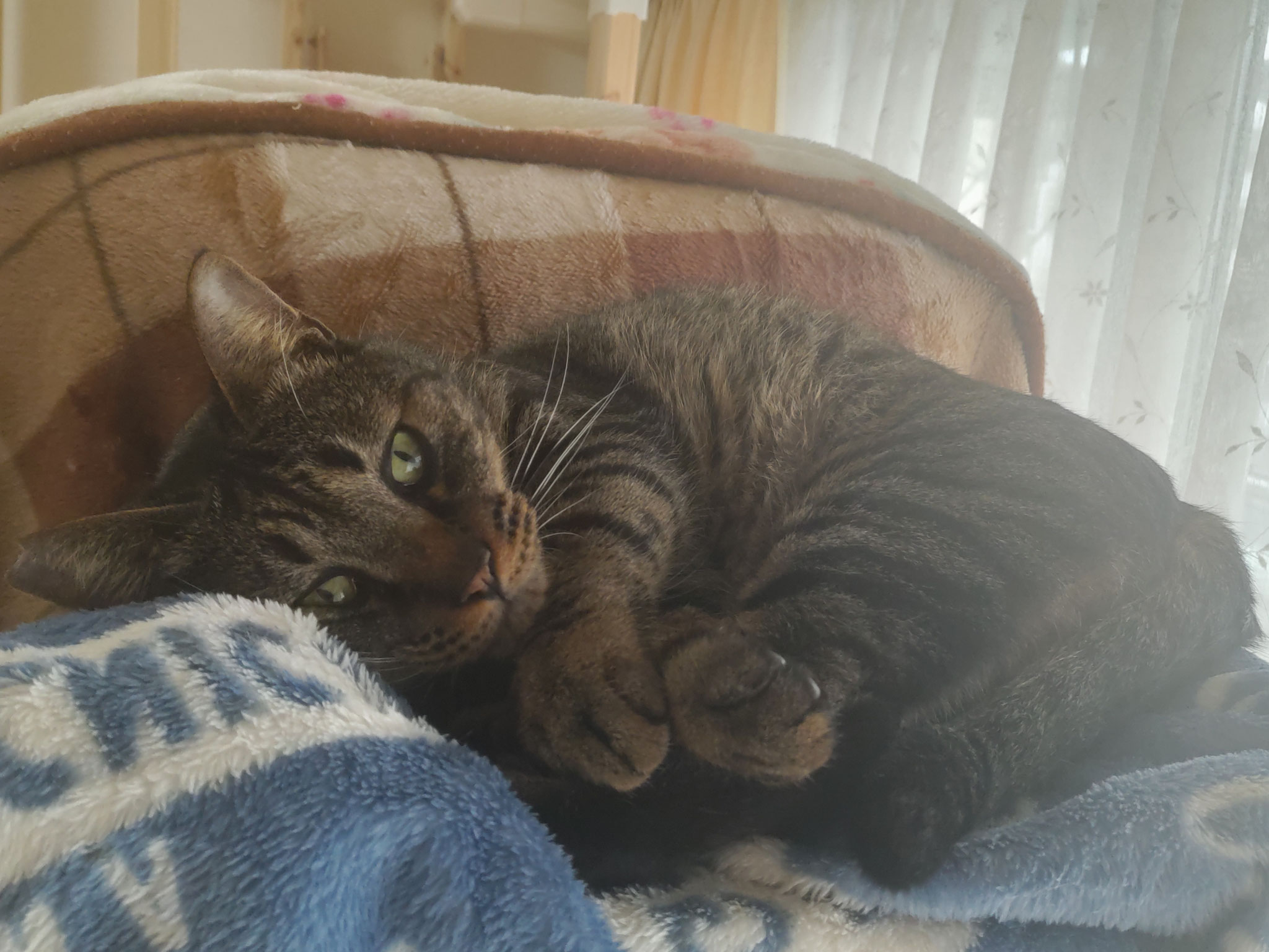 人馴れもだいぶ進み、お腹をみせて寝たり、おやつの準備中にはスリスリしたり鳴いて催促してくれる事もあります✨