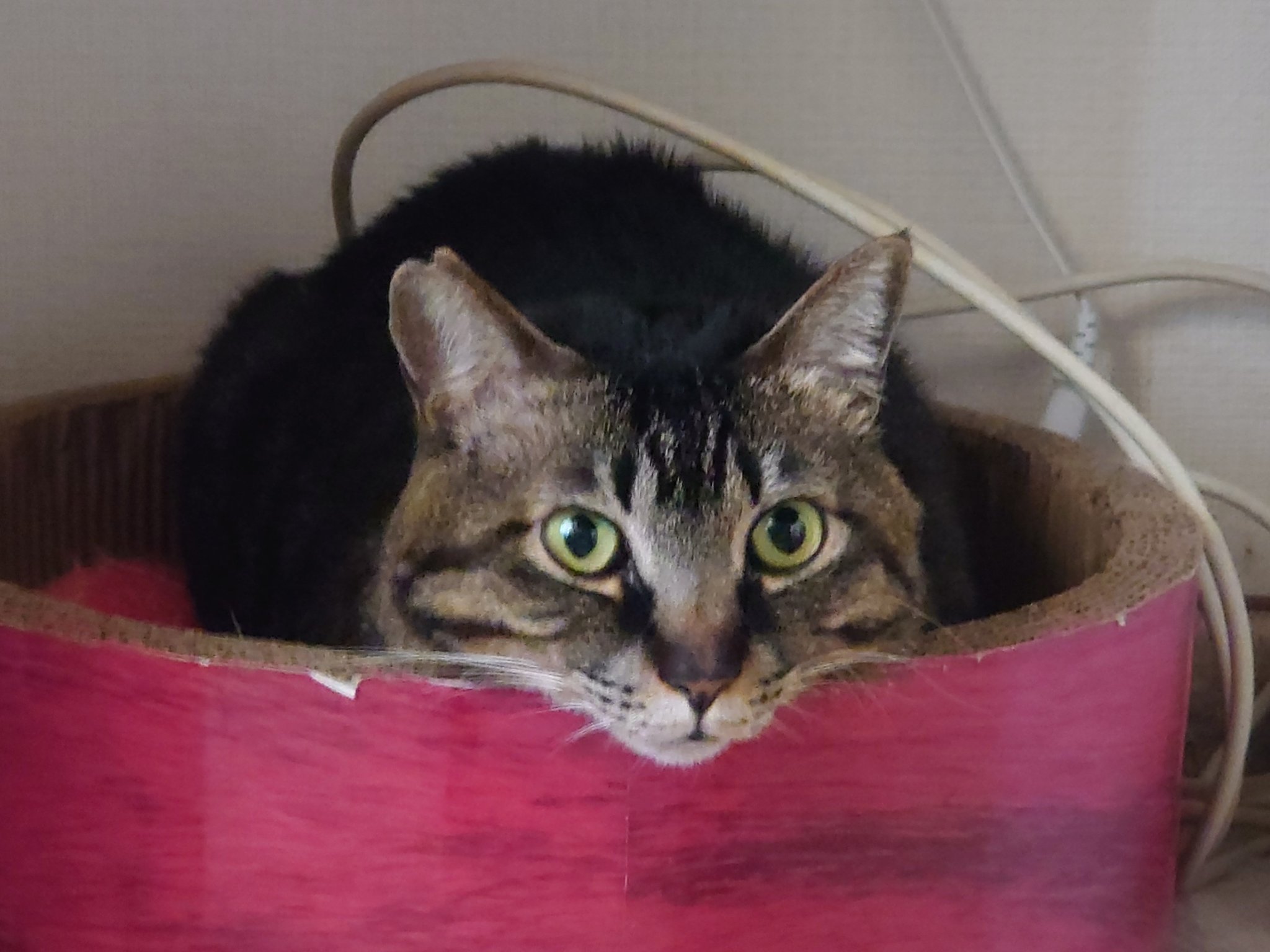 普段は隠れ場所で寝ているため静かに過ごしています。