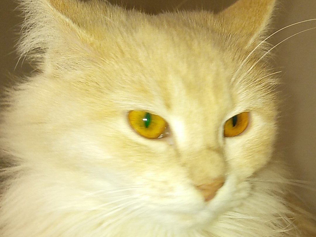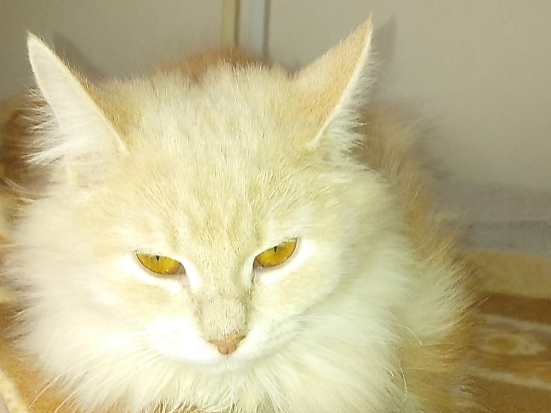 ふわふわのライトベージュの長い毛並みが自慢の猫です。