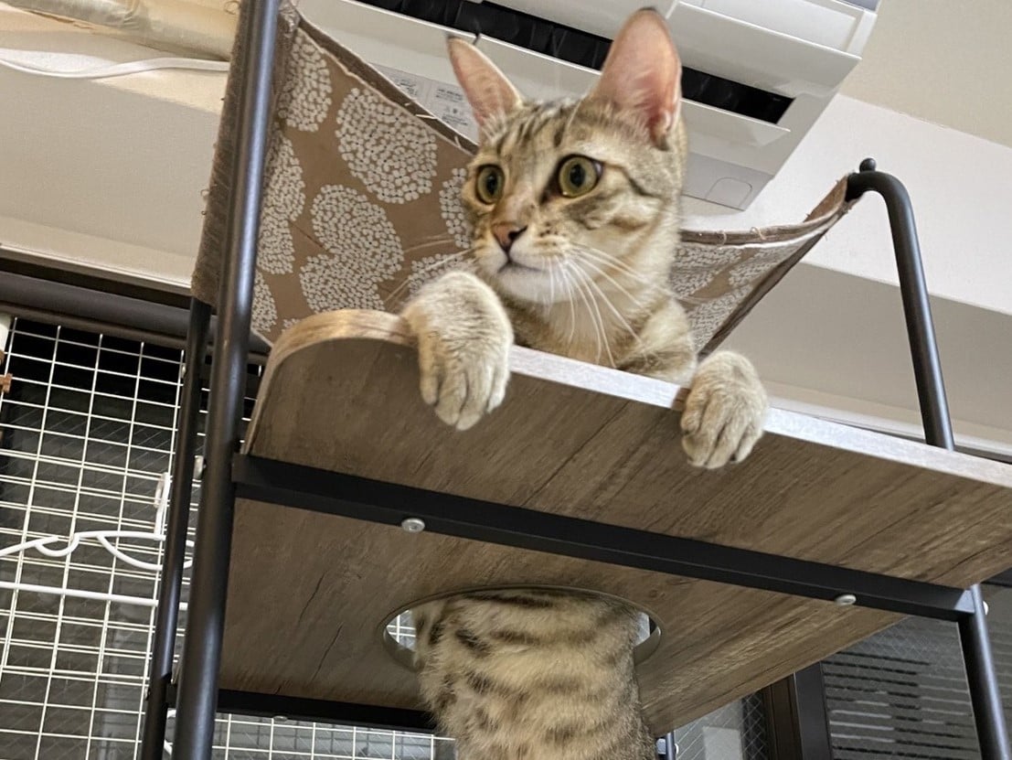 保護後は、保護部屋の中を走り回ったりキャットタワーに登ったりと、目が不自由ということを忘れるくらいの環境適応能力を発揮しています。