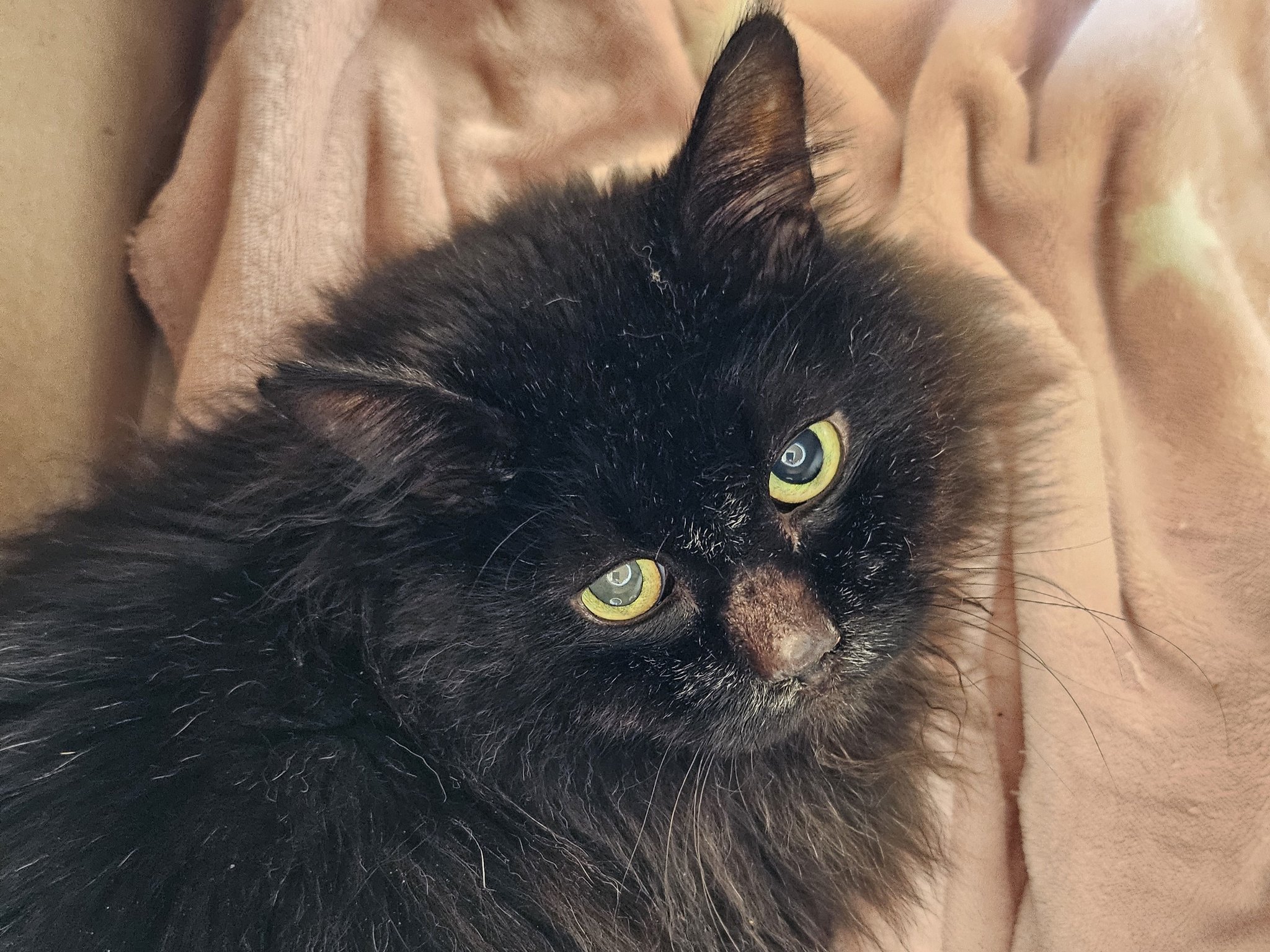 お外にいた頃の猫風邪の悪化により、両目がほとんど見えていない状態の中、1匹で頑張って生活していました。
